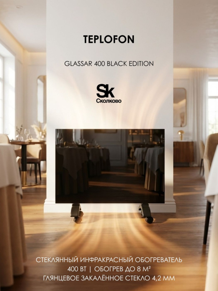 Инфракрасная стеклянная панель ОТЕЧЕСТВЕННОГО ОБОГРЕВАТЕЛЯ ТЕПЛОФОН GLASSAR поддержит комфортную температуру, не пересушивая воздух и распределит тепло равномерно по всему помещению для комфортного пребывания в нем!