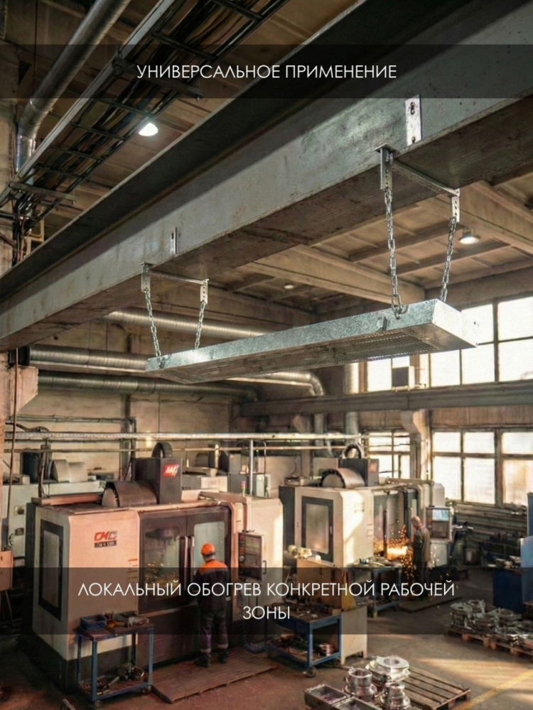 Локальный обогрев: Позволяет эффективно прогревать отдельные рабочие зоны в больших холодных ангарах.