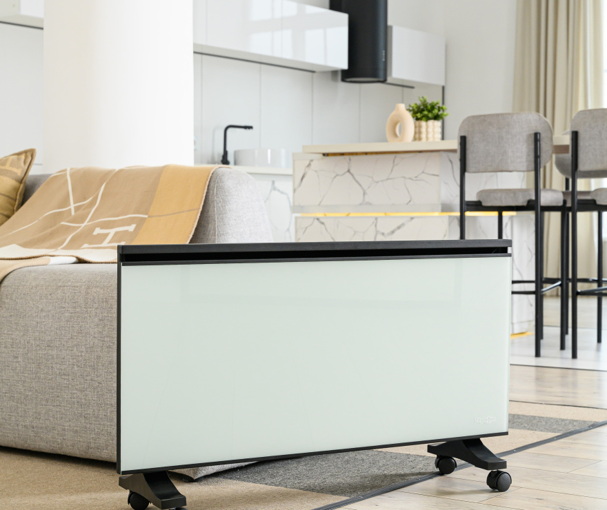 BINAR – это два в одном, конвектор и инфракрасный.  Конвектор быстро нагревает помещение до заданной температуры, а инфракрасная стеклянная панель поддерживает заданную температуру не пересушивая воздух.