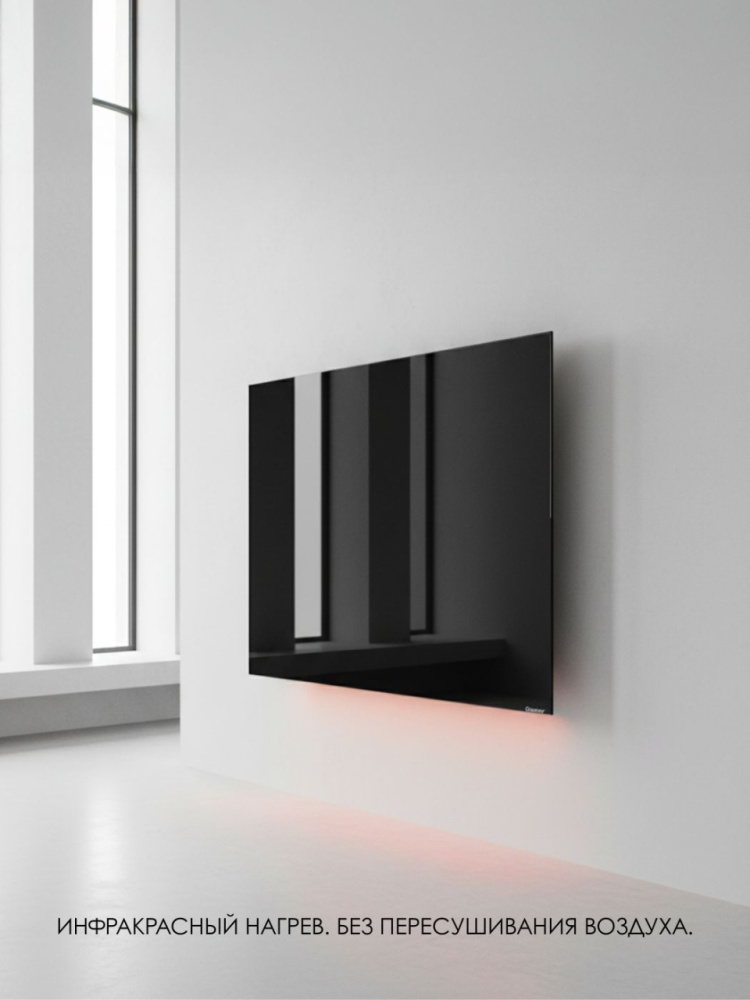Инфракрасная стеклянная панель ОТЕЧЕСТВЕННОГО ОБОГРЕВАТЕЛЯ ТЕПЛОФОН GLASSAR поддержит комфортную температуру, не пересушивая воздух и распределит тепло равномерно по всему помещению для комфортного пребывания в нем!